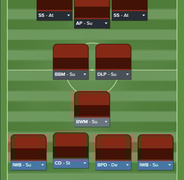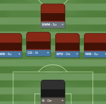Just ahead of the defense lies the ball winning midfielder, the beast at the back, who has no issues in tearing through any opposing force that stands in his way. He does nothing but protect your back four, or the back two if you prefer to have your wing-backs tearing up the pitch in support of the attack. I don't in this particular formation.