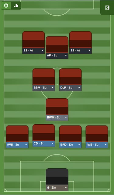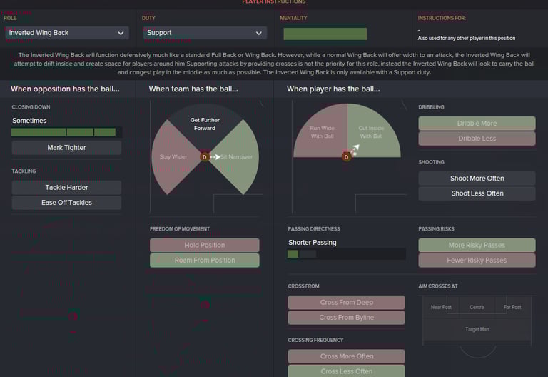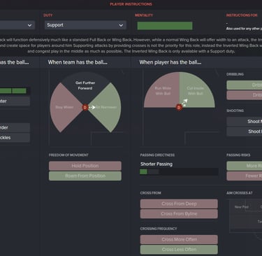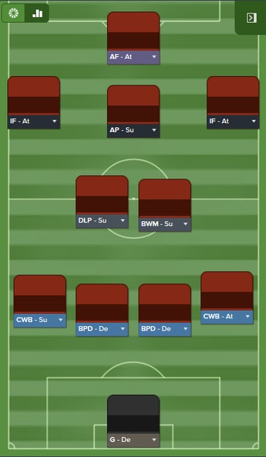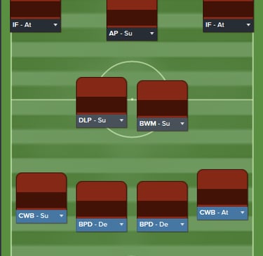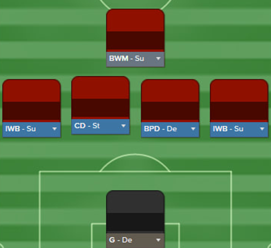 I like to have my wing-backs inverted, meaning they cut inside the pitch which causes more option for short, speedy play and disrupting defenses with pure pace and confusion.
