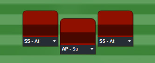 Onto the three-pronged spearhead. The attack consists of two second strikers and an advanced playmaker. The AP can also be deployed as an enganche or an attacking midfielder, but basically there should be someone in the hole spraying balls about. As dirty as that sounds. Though if you want to maximise chances, you could deploy three second strikers and have an advanced playmaker and central midfielder supply the direct balls.
